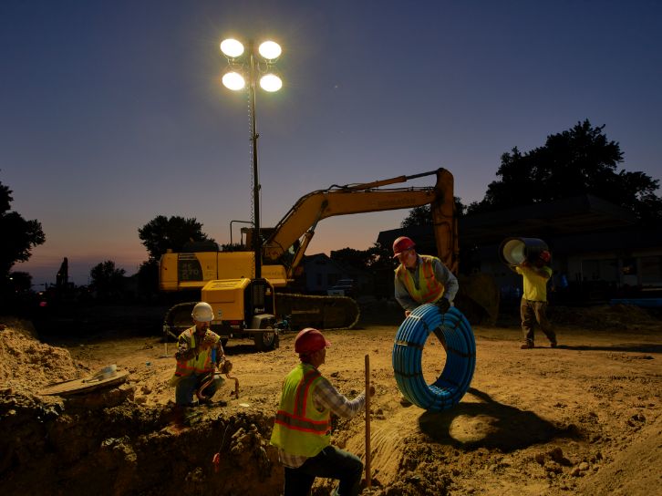 Light towers typically run for extended periods, so the 1,000-hour maintenance interval on the Perkins-powered Night-Lite™ Pro Series will lead to fewer service disruptions during ongoing projects. The towers’ Perkins engines also support up to 50 hours of continuous operation and are designed to minimise operating noise levels.
