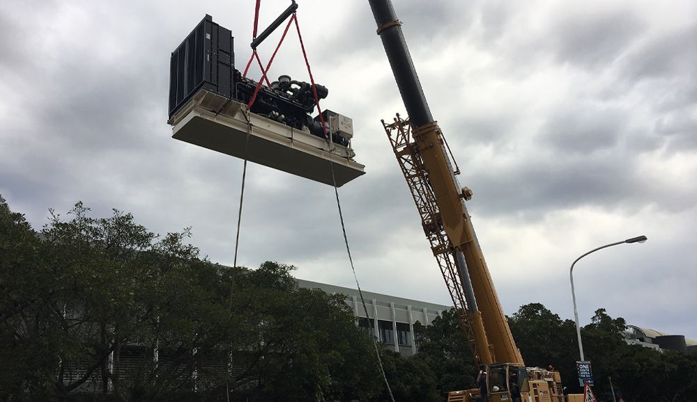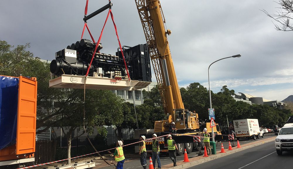 Once on site in Cape Town, the two sets – weighing 13.5 tonnes each – were rigged over trees and into their respective generator rooms. FGW Generators’ technicians then stepped in to complete all the required electrical connections, fuel connections and exhaust system to create a professional installation.