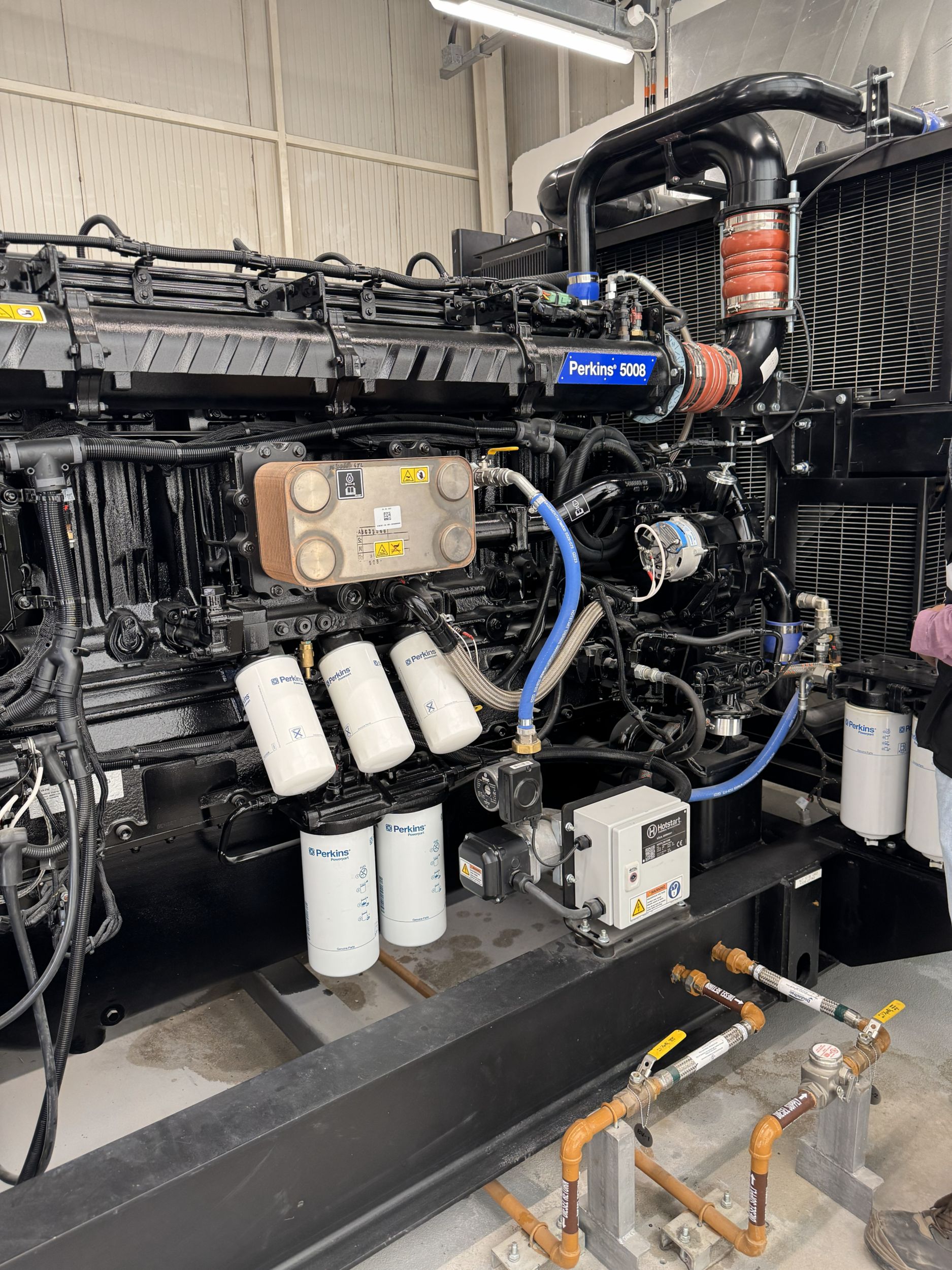 The Perkins® 5000 Series is a fully electronic range of inline six and eight cylinder and V12 and V16 cylinder engines with a range of 750 to 2500 kVA of power potential. The 5000 Series was designed to provide quick, reliable and cost-effective power. In November 2024, PowerCo updated its generator sets to the Perkins® 5008 engine with 1250 kVA prime power to meet rising power requirements for the airport.