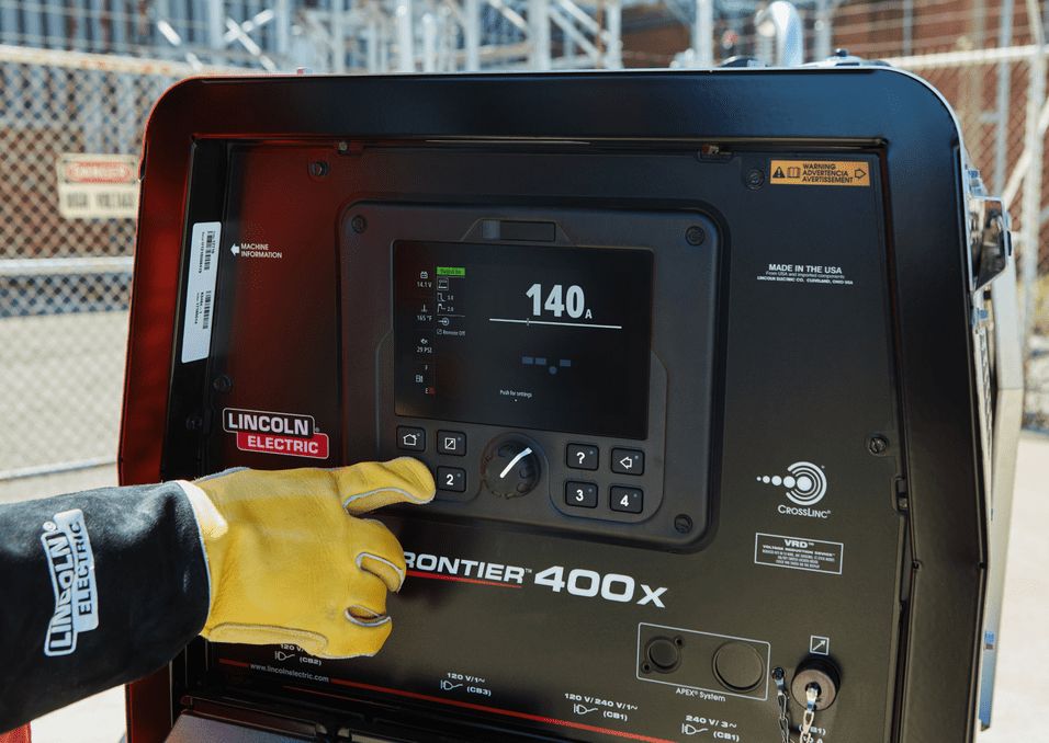 The Frontier 400X’s welding quality, productivity and safety are amplified through CrossLinc®, Lincoln Electric’s patented operator control technology. Rather than running numerous cables and wires across the jobsite, all power and communication is transmitted through a single standard weld cable for greater arc control at the source.