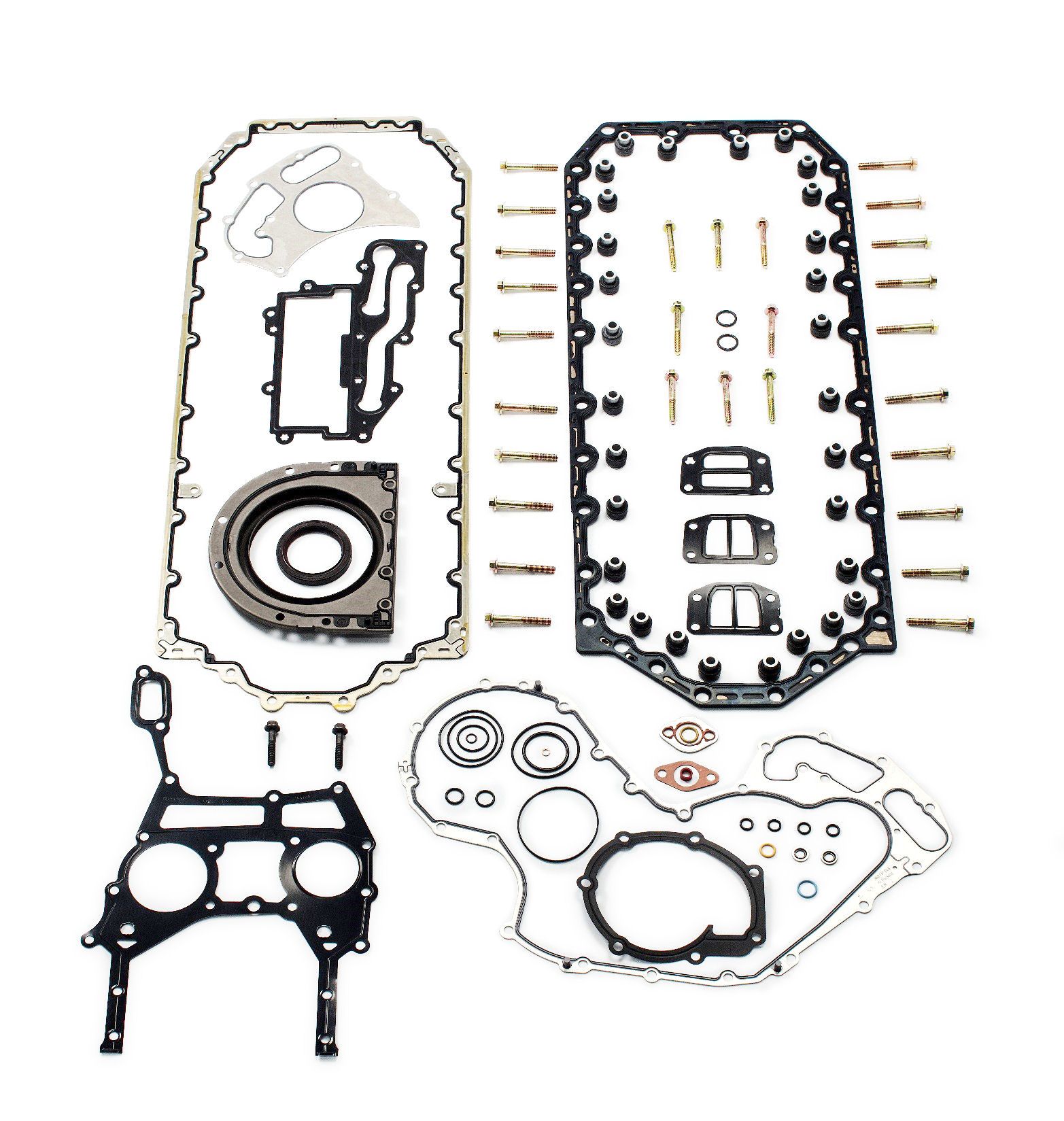 1100D 顶部垫片和密封套件包括:缸盖垫片、摇臂盖垫片、排气歧管垫片、阀杆密封圈、喷油器 O 形圈和垫圈、感应垫片以及各种 O 形圈。