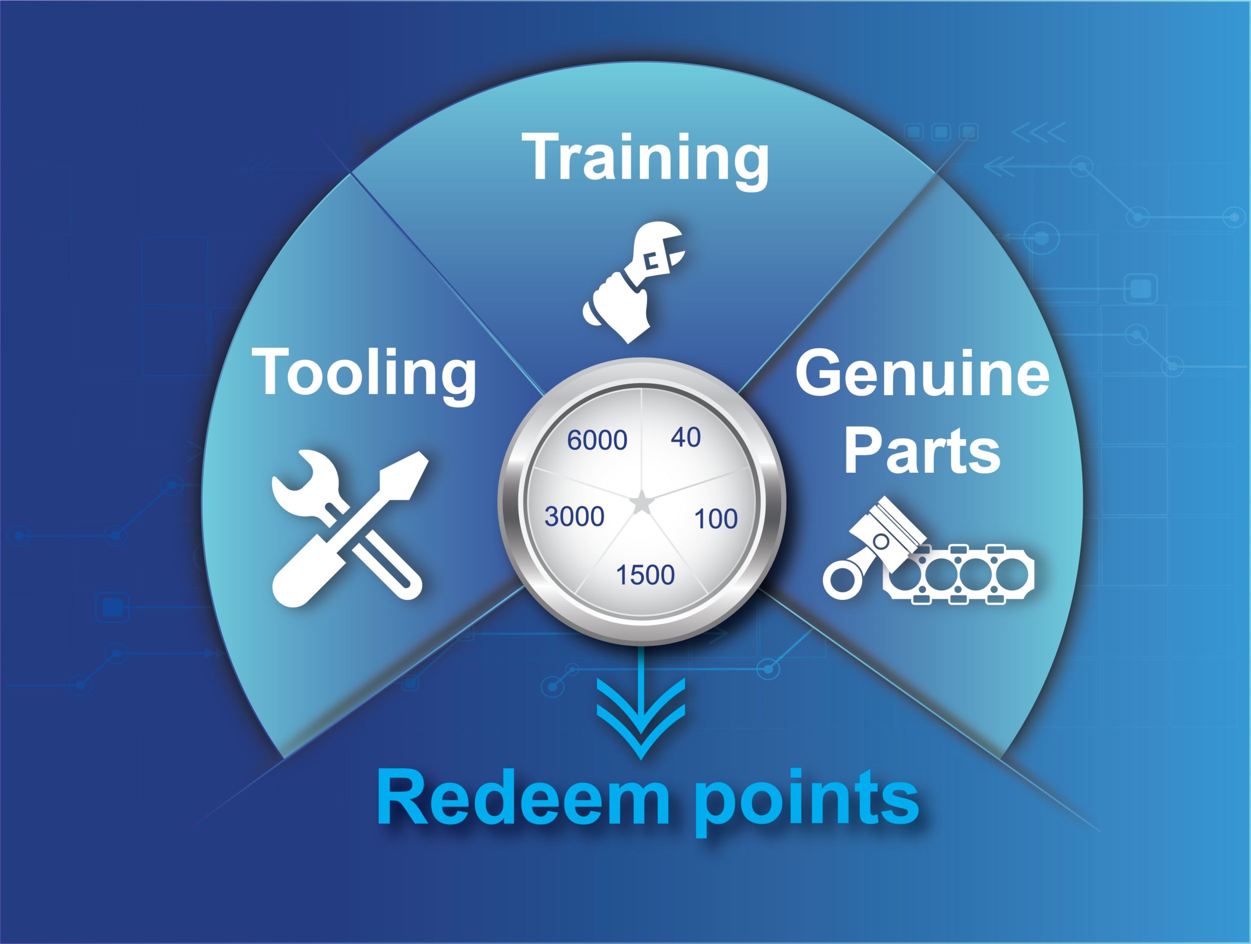Perkins 发动机忠诚度计划会员每注册一台发动机即可获得 40 点积分。忠诚度积分可用于下列兑换: